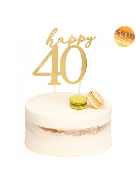 1 Topper de bolo 13x12 cm Feliz 40 Dourado