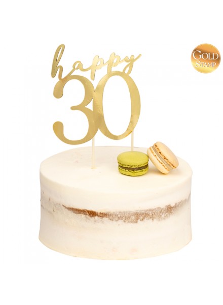 1 Topper de bolo Feliz 30 Dourado - und.