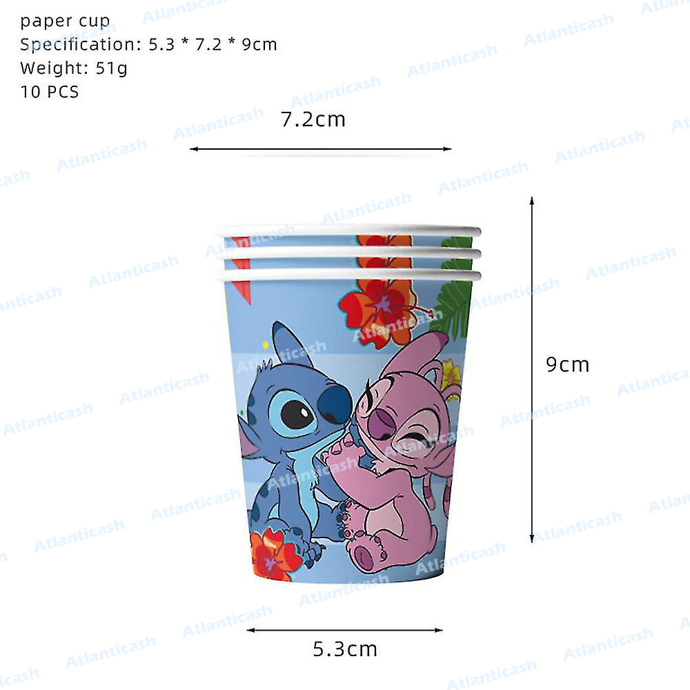 Conjunto de 10 copos de papel descartáveis com tema do Stitch e da Angel da Disney.