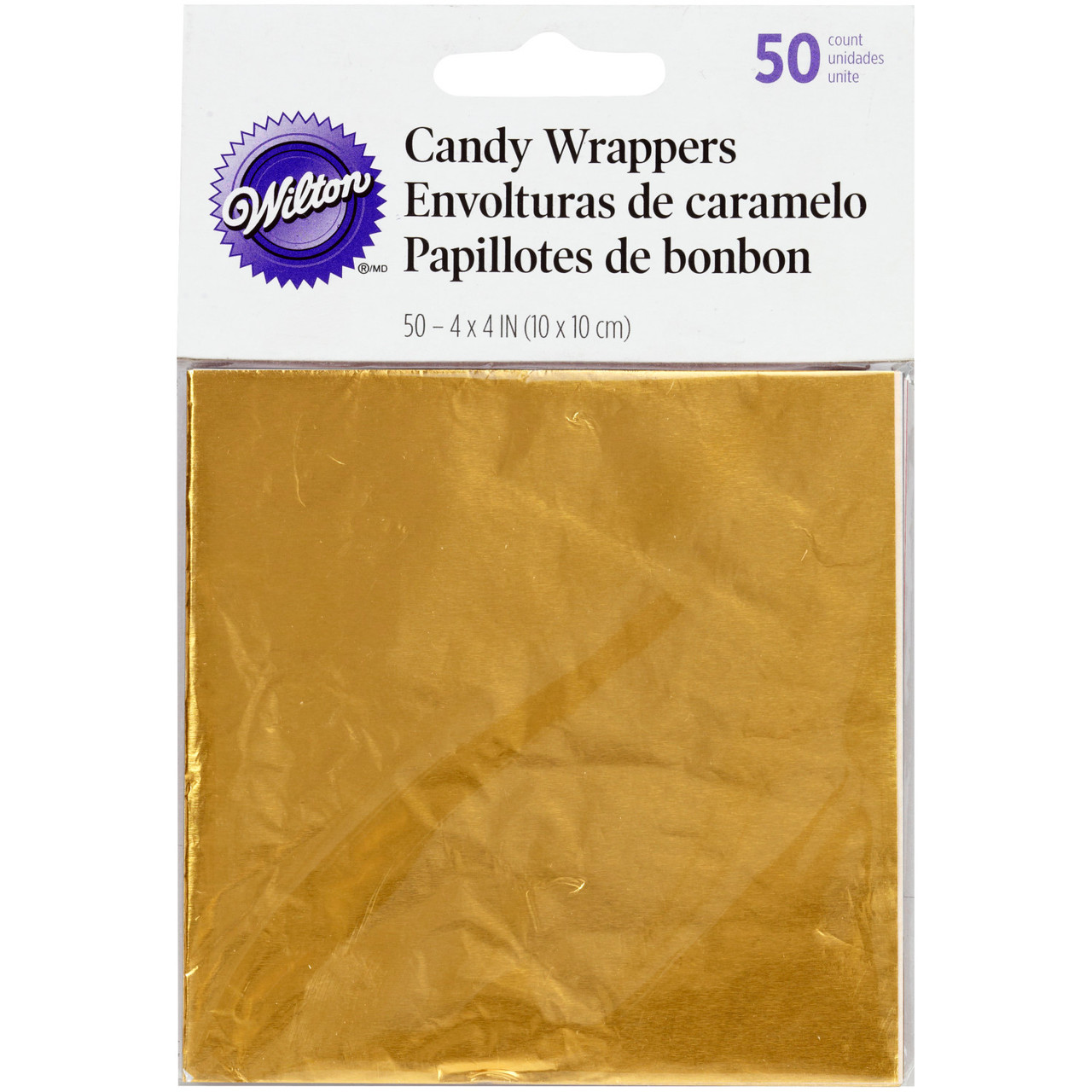 INCLUI: 50 folhas de alumínio Wilton douradas para doces. Dimensões das folhas: 10 x 10 cm.