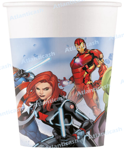 Conjunto de 8 copos de papel dos Vingadores da Marvel. Ideal para decorares a tua festa de aniversário com o mesmo tema.