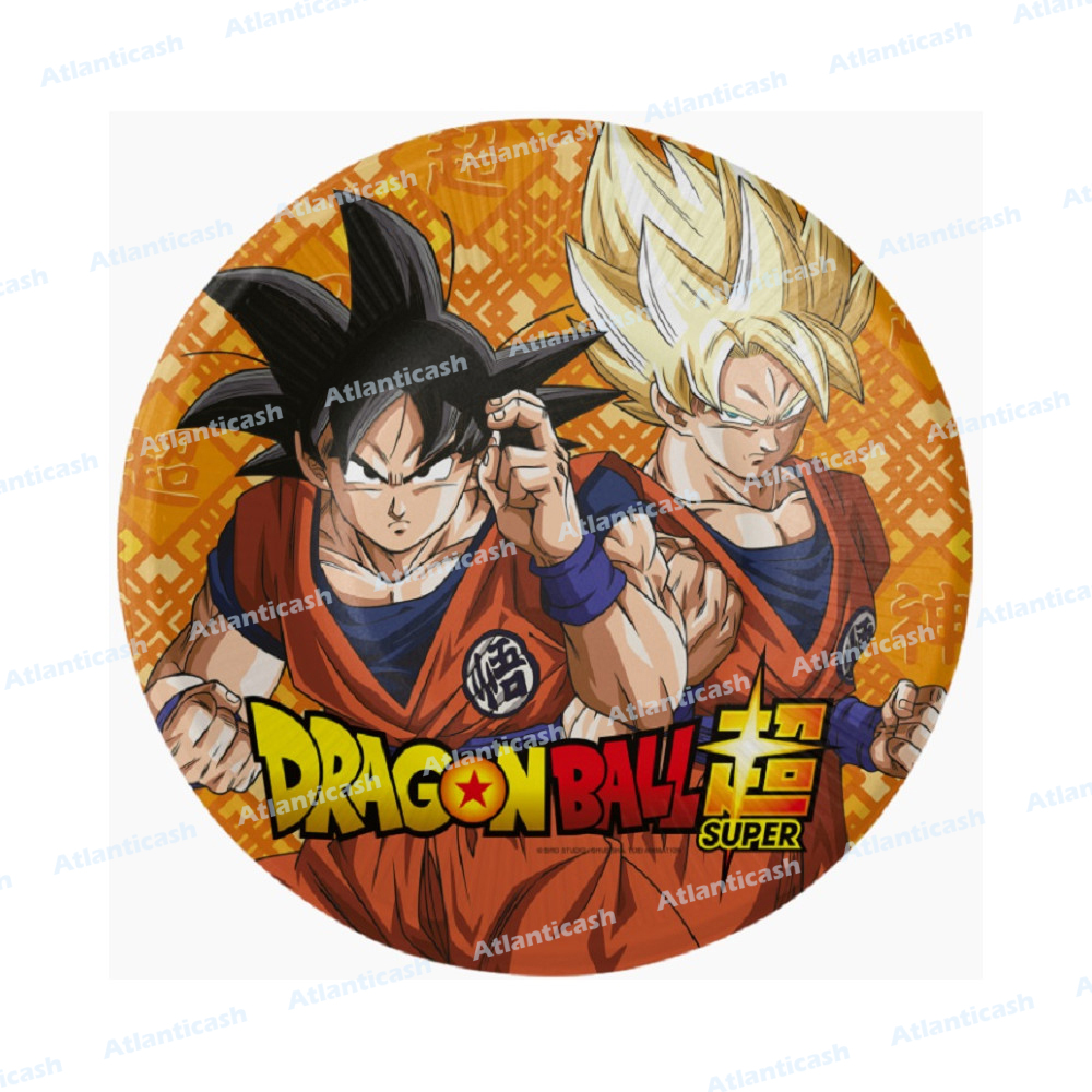 Conjunto de 8 pratos do Dragon Ball Super com 18cm para decoração da tua festa com o mesmo tema.