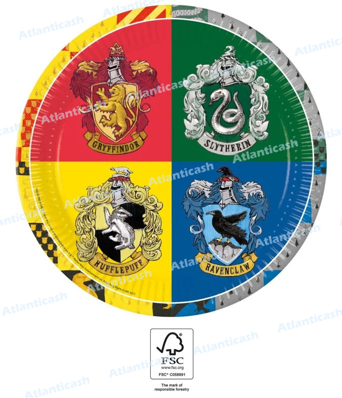 Conjunto de 8 pratos do Harry Potter, para tornar decorar a tua festa de aniversário. Feitos em papel, amigos do ambiente.