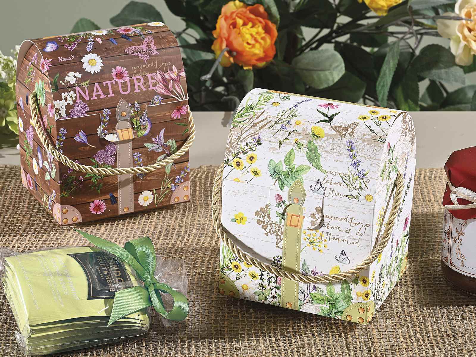 Art - Caixa de Papel Primavera e alça de corda (10x9x13A)und.