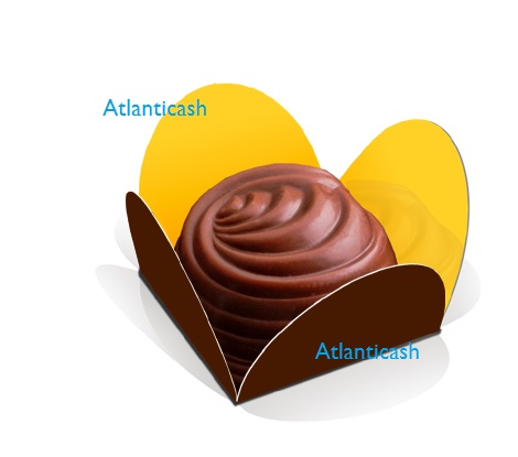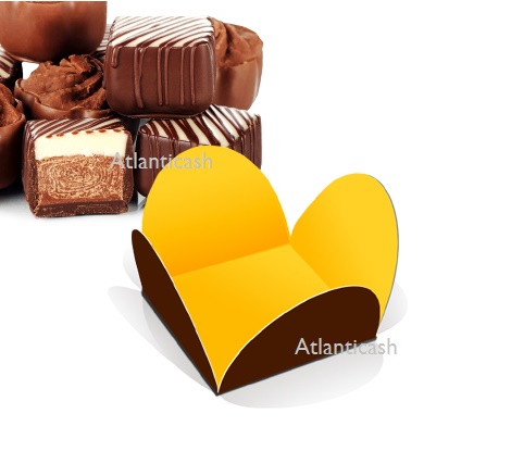 Base para doçarias 3,3x3,3x2,3 cm, em dourado e castanho. Ideal para chocolates e bombons.