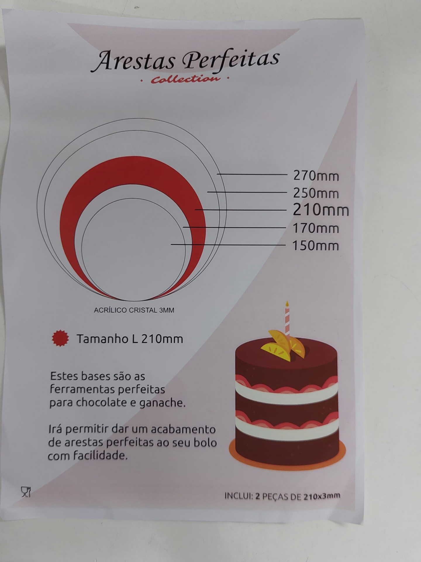 Bases arestas perfeitas Acrílico (15 / 17 / 21 / 25 / 27 cm) -