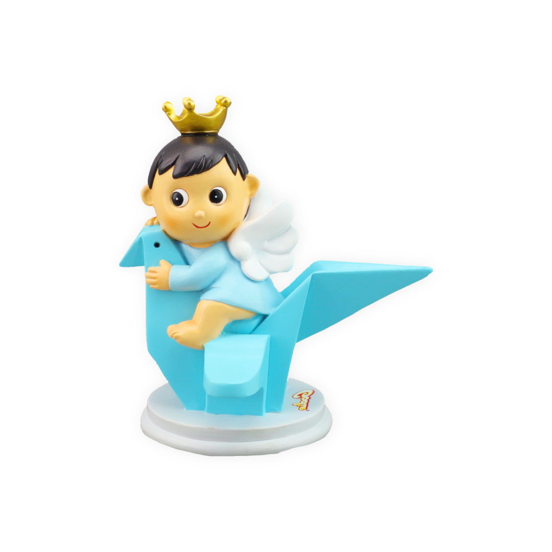 Delicada figura “Bebé Origami Azul”, ideal para decorar bolos de batizado, baby shower, nascimento ou revelação de género. Com um design moderno inspirado no estilo origami, apresenta linhas suaves e um acabamento elegante que valoriza qualquer decoração.