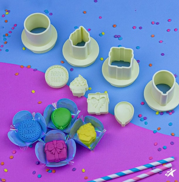 Com 4 corpos e 4 carimbos diferentes, o Ejetor Max Parabéns traz silhuetas exclusivas para os doces.