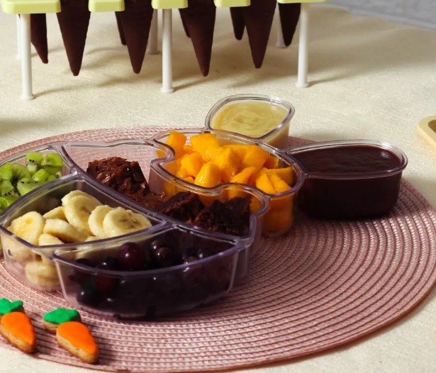 A Fondue Box Coelho foi desenvolvida para transformar doces em um presente completo de Páscoa. Com design temático e formato estilo petisqueira, possui divisórias internas que permitem combinar diferentes tipos de doces, aumentando o valor percebido do produto final. Resistente e com tampa de fechamento seguro, facilita o transporte e o envio por delivery, garantindo que cada item permaneça no lugar. Disponível em diversas cores, amplia as possibilidades de montagem e atende diferentes perfis de público. Uma embalagem estratégica para gerar desejo, elevar o ticket médio e impulsionar o giro no período sazonal.