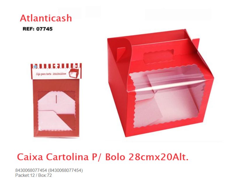 Caixa Cartolina Bolo cor Vermelha 28cmx20cm Altura - Pack 3 und