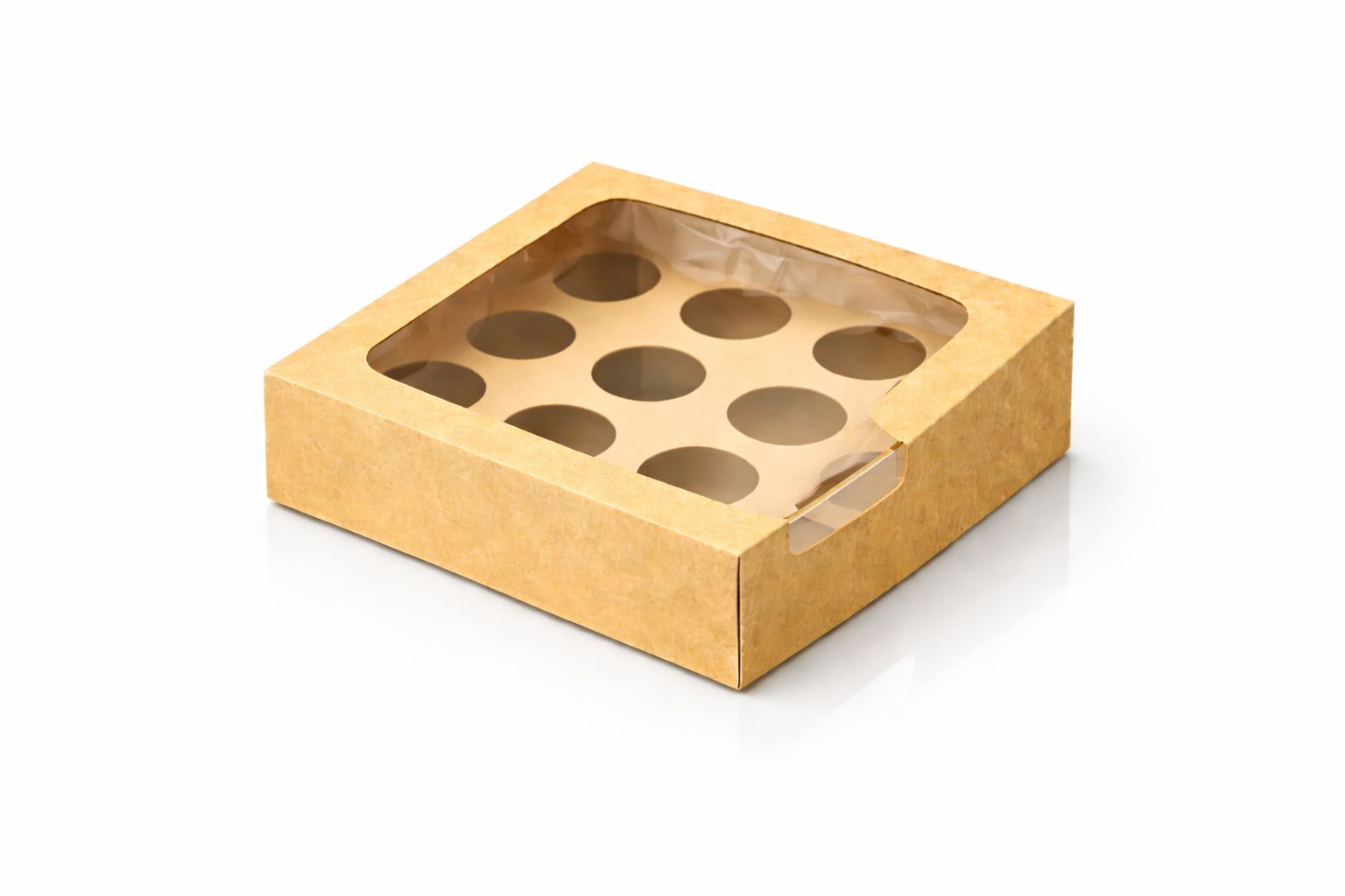 Caixa em kraft natural, prática e elegante, ideal para a apresentação e transporte de brigadeiros, trufas e outros doces individuais. O visor transparente na tampa permite uma excelente visualização do interior, valorizando o produto e tornando-a perfeita para vendas, lembranças ou ofertas especiais.