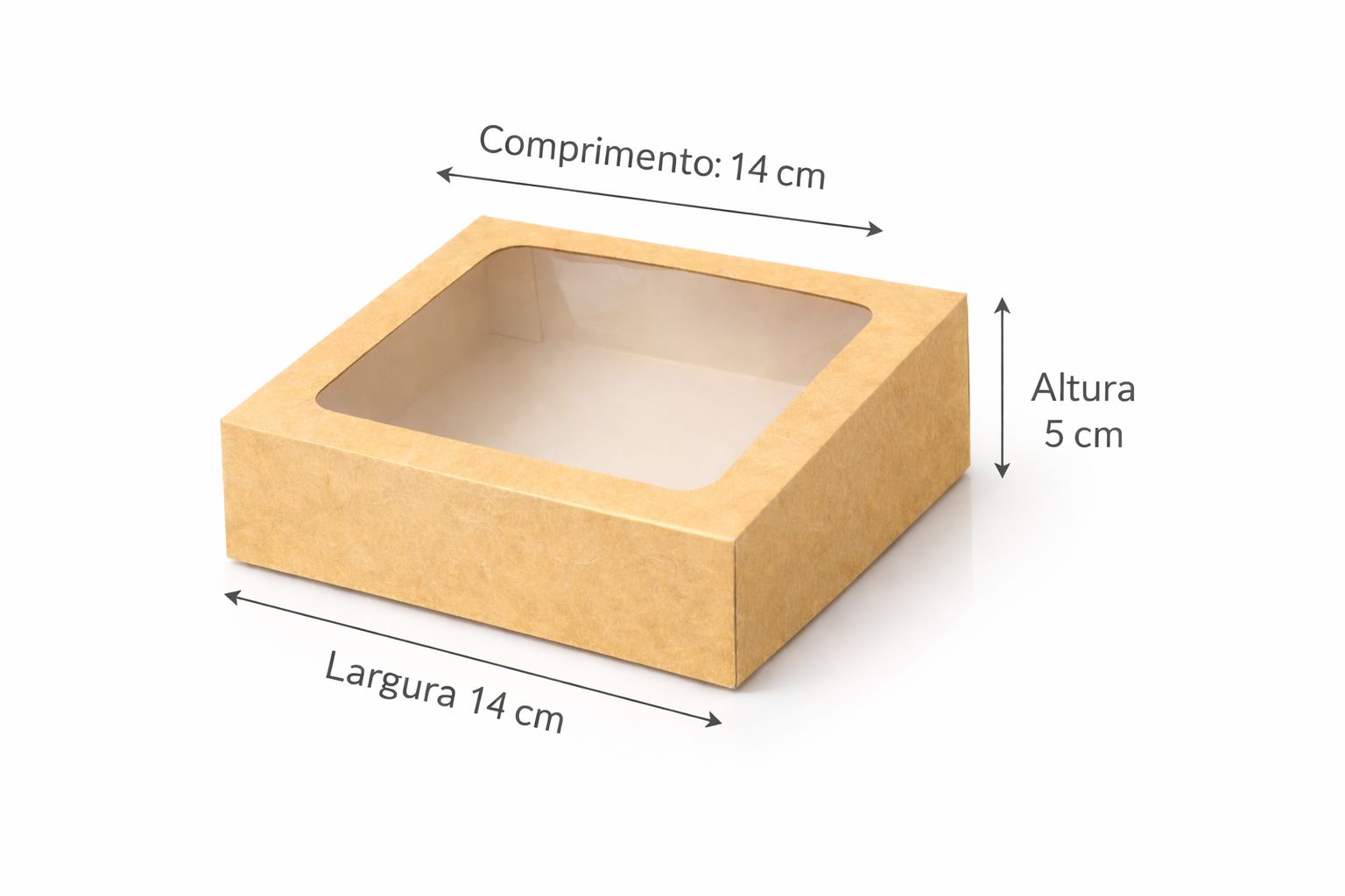 Caixa em kraft resistente e ecológica Tampa com visor transparente para melhor apresentação Ideal para brigadeiros, trufas e doces semelhantes Aspeto simples, moderno e profissional
