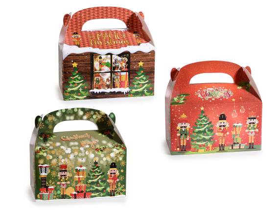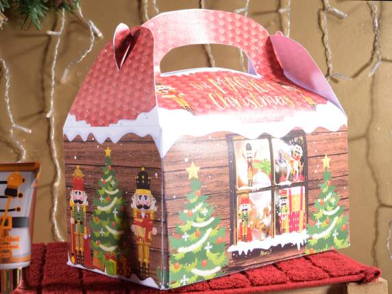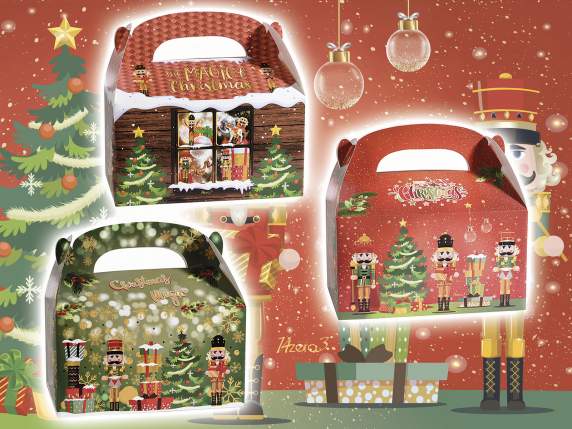 CAIXA TIPO MOCHILA COM ALÇA DE PAPEL ESTAMPA "QUEBRA NOZES" 19x11,5x10A -und.