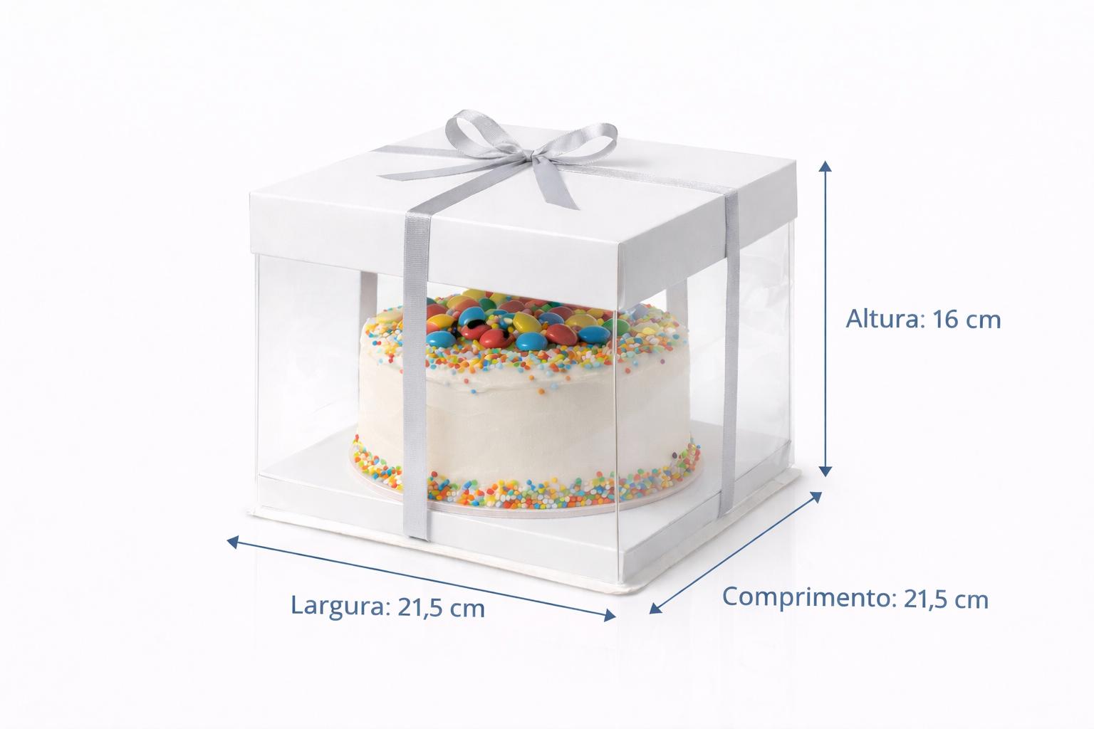 Caixa Transparente para Bolo com Laço – 21,5 x 21,5 x 16 cm