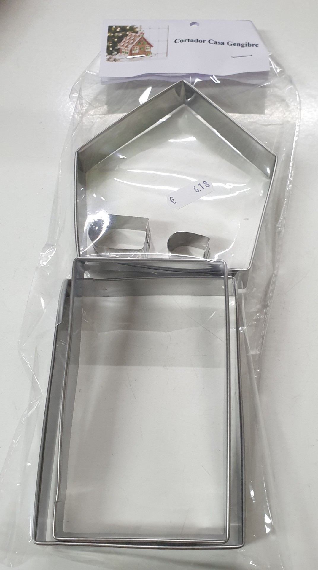 Kit de cortadores com 5 peças perfeito para você fazer uma linda casa de biscoito de gengibre.