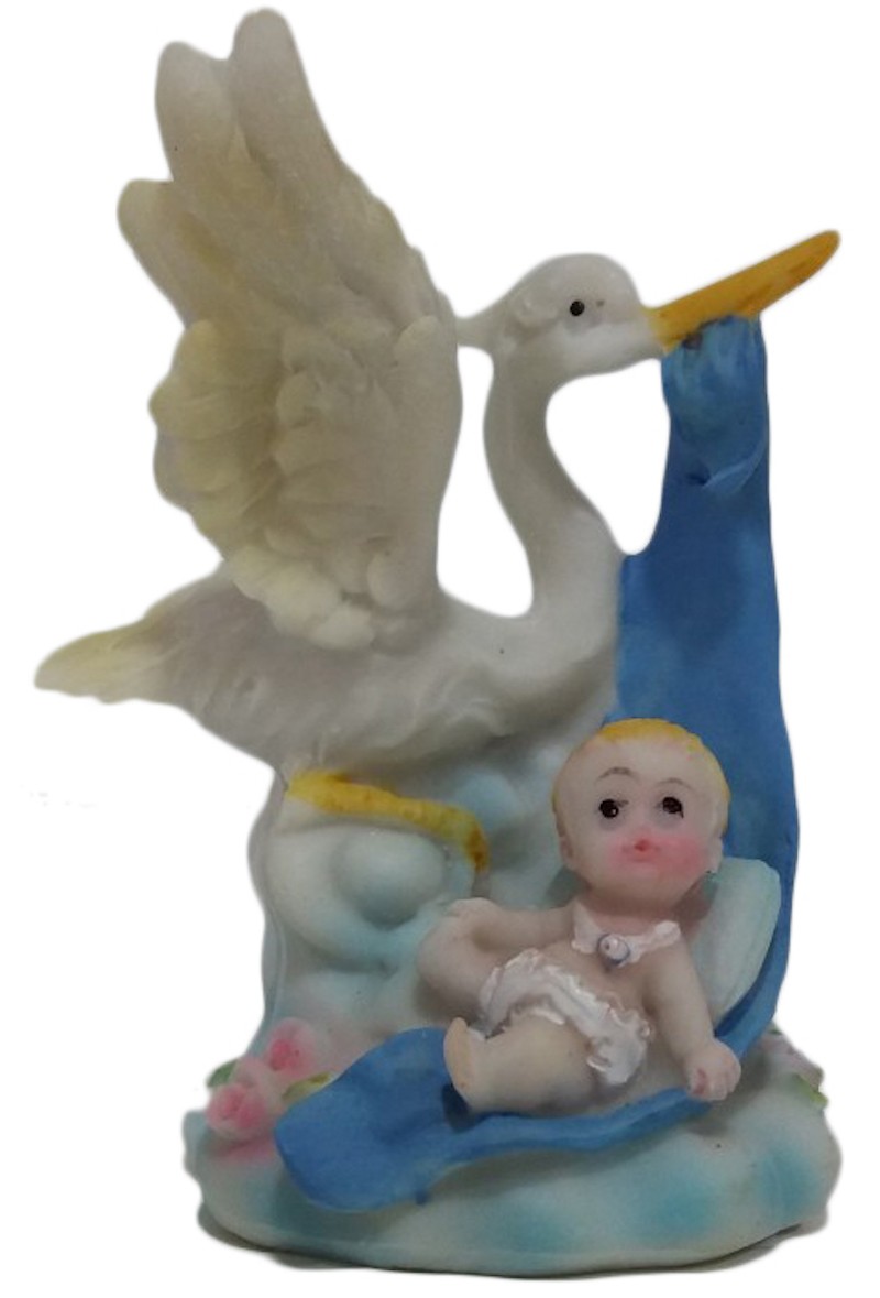 Cegonha com menino 8,5 cm batizado