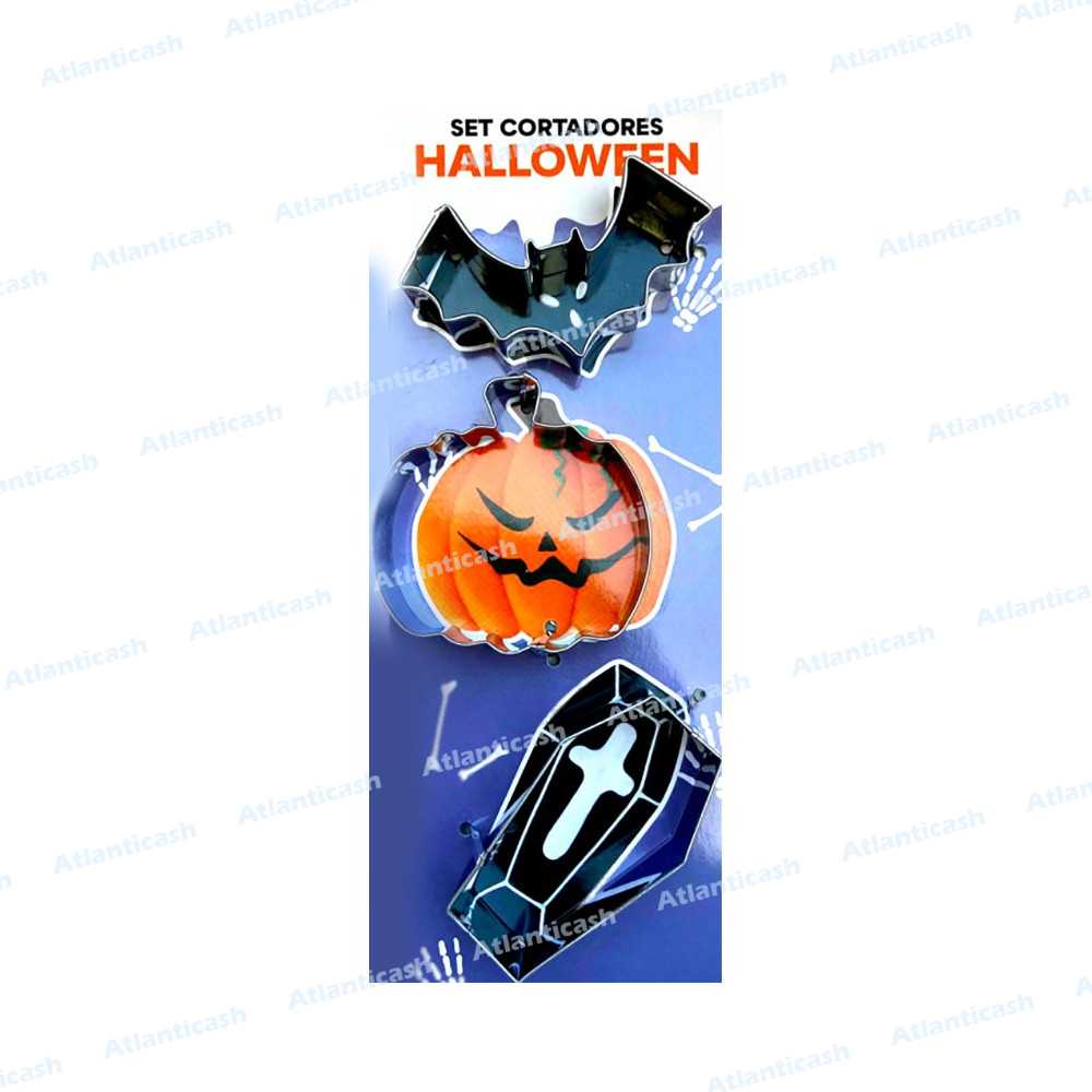Conj. 3 Cortadores Halloween: Morcego, Abóbora e Caixão