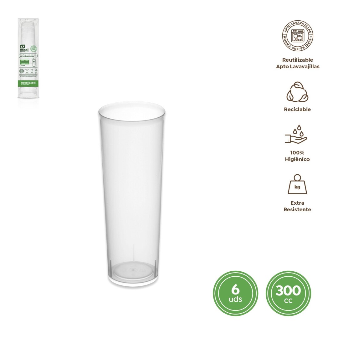 Copo Tubo Reutilizável Inquebrável PP Transparente 300ml - 10 Uds