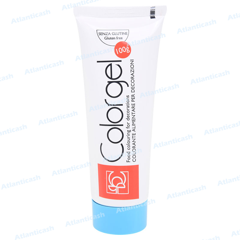 Corante alimentar em gel 100 g do Modecor solúvel em água.