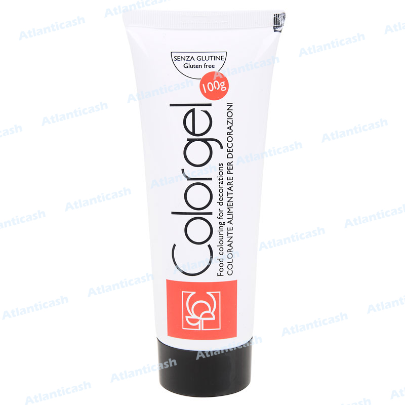 Corante alimentar em gel 100 g do Modecor solúvel em água.