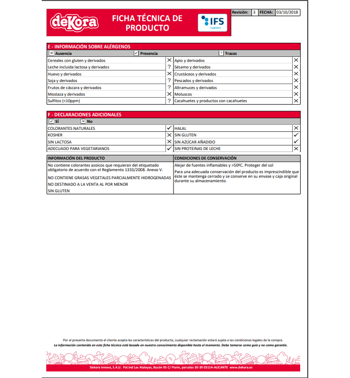 Adequado para vegetarianos, Coloração natural, E171 grátis, Sem glúten