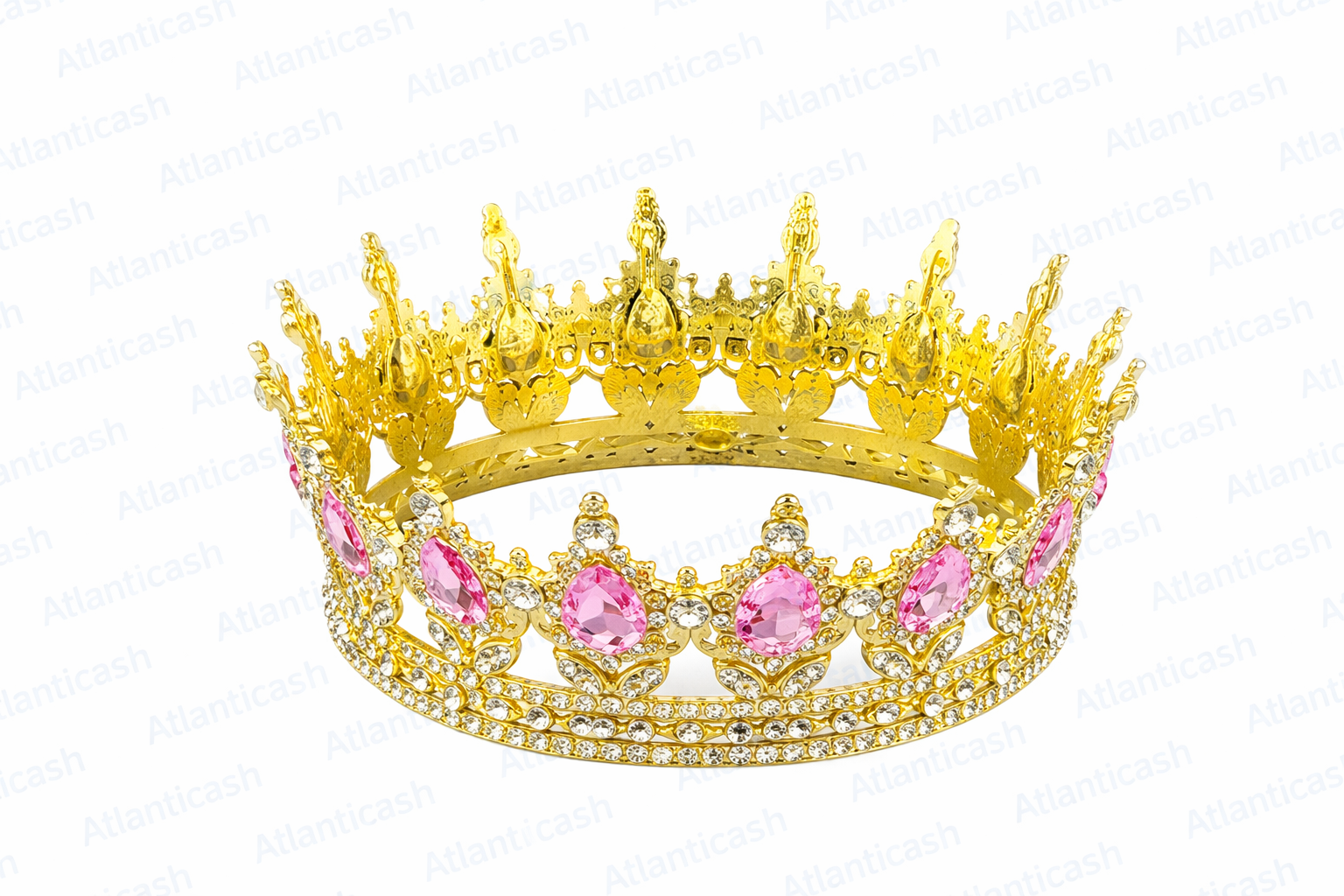 Coroa Dourada Metálica c/ Pedras Rosa ( 15cm)