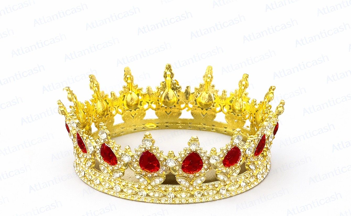 Coroa Dourada Metálica c/ Pedras Vermelhas ( 15cm x 5Alt. )