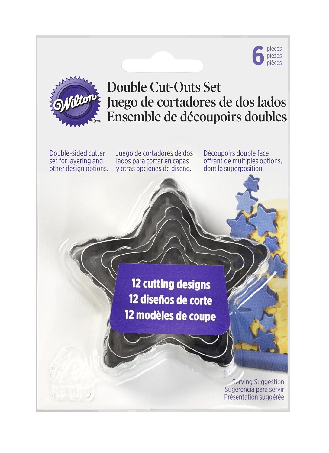 Wilton 417-2584 6-Piece Nesting Fondant Double Sided Cut Out Cutters, Star