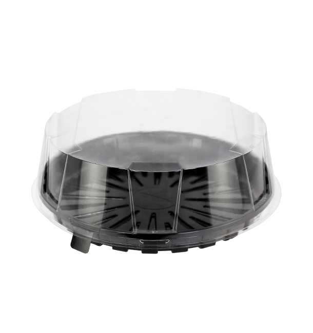 0020T200BW BASE ENVASE PET NEGRO - TAPA ENVASE PET TRANSPARENTE Ø200 x 80  Altura