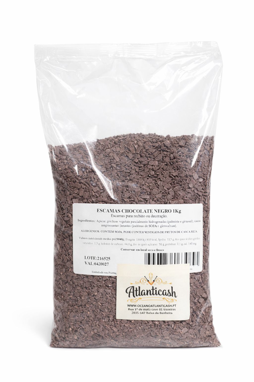 ✅ Peso: 1 kg ✅ Ideal para: decoração, cobertura e recheios ✅ Sabor: chocolate negro suave e cremoso ✅ Origem: Portugal ✅ Marca: Atlanticash