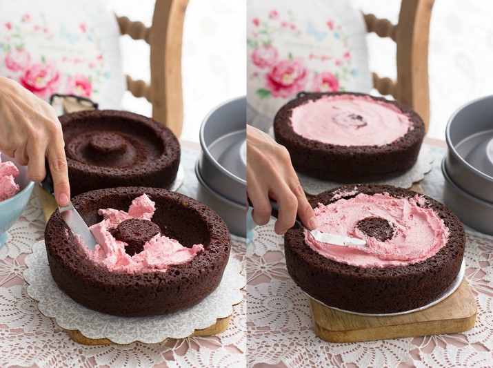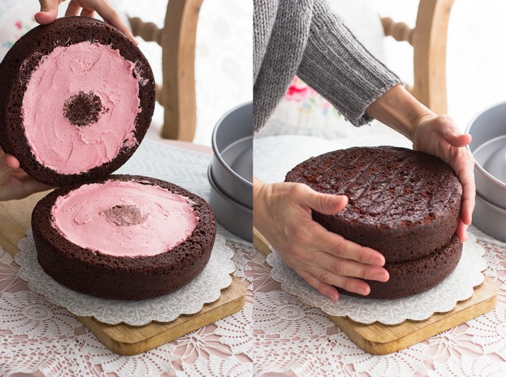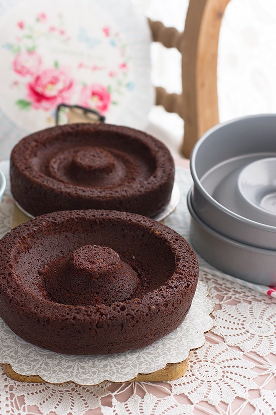 Forma de bolo com recheio em forma de coração