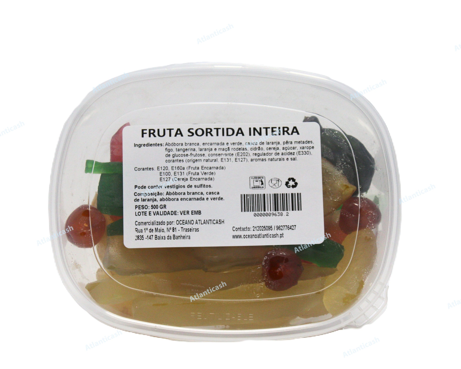 Embalagem :500gr de fruta cristalizada inteira sortida