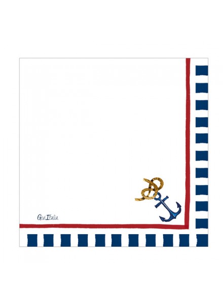 16 guardanapos de papel, 33x33 cm, tripla camada. O guardanapo Nautical, com suas âncoras e textura delicada, adicionará um toque marítimo à sua mesa. Este guardanapo da linha Lifestyle foi criado para tornar a sua mesa única. Os guardanapos são ecologicamente corretos: possuem a Certificação Aticelca e, portanto, são recicláveis.