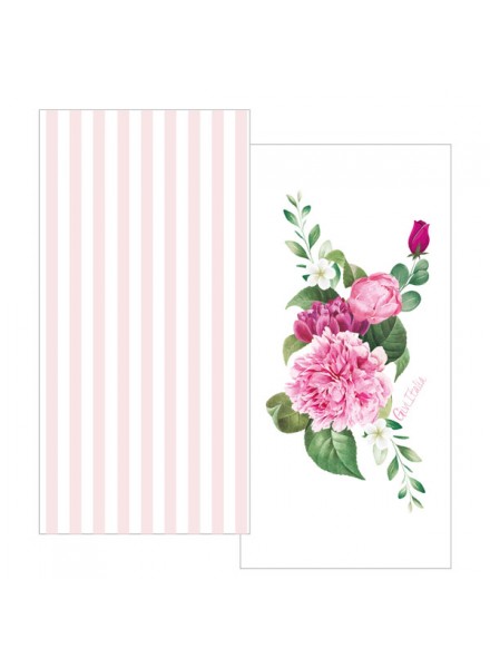 16 guardanapos de papel, 33x33 cm. Os guardanapos são sortidos no pacote: 8 guardanapos com estampa floral rosa e 8 guardanapos brancos com uma delicada listra rosa. Os guardanapos são ecologicamente corretos: possuem a Certificação Aticelca e, portanto, são recicláveis.
