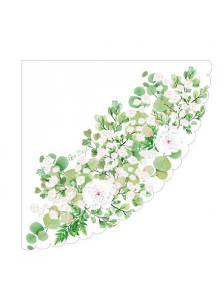 16 guardanapos de papel moldados, 33x33 cm, 3 folhas. O guardanapo Wedding Green, com seu formato arredondado, deixará sua mesa original e delicada. Perfeito para a mesa de casamento, mas não só... Este guardanapo da linha Lifestyle foi criado com o objetivo de tornar a sua mesa única. Os guardanapos são ecologicamente corretos: possuem a Certificação Aticelca e, portanto, são recicláveis com papel.