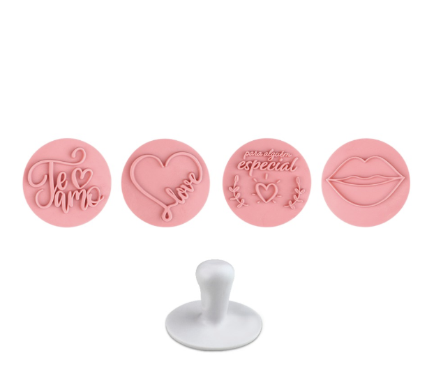 O kit inclui 4 carimbos e 1 cabo para encaixe.