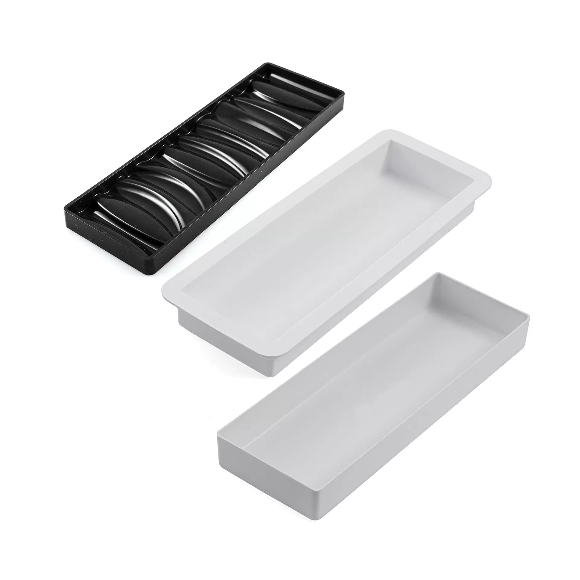 Descrição Espaço, silêncio, essencialidade, beleza... talvez uma ilusão, mas todos sabem que, no deserto, os miragens são reais. O Kit Sahara1250 da Silikomart Professional é composto por três elementos: um molde em silicone para criar uma preparação com um volume de 1250 ml, um suporte em plástico para garantir maior estabilidade do molde durante o processo de criação, e um tapete em silicone com um padrão ondulado original. Versatilidade e elegância em uma preparação que será a protagonista na sua vitrina.