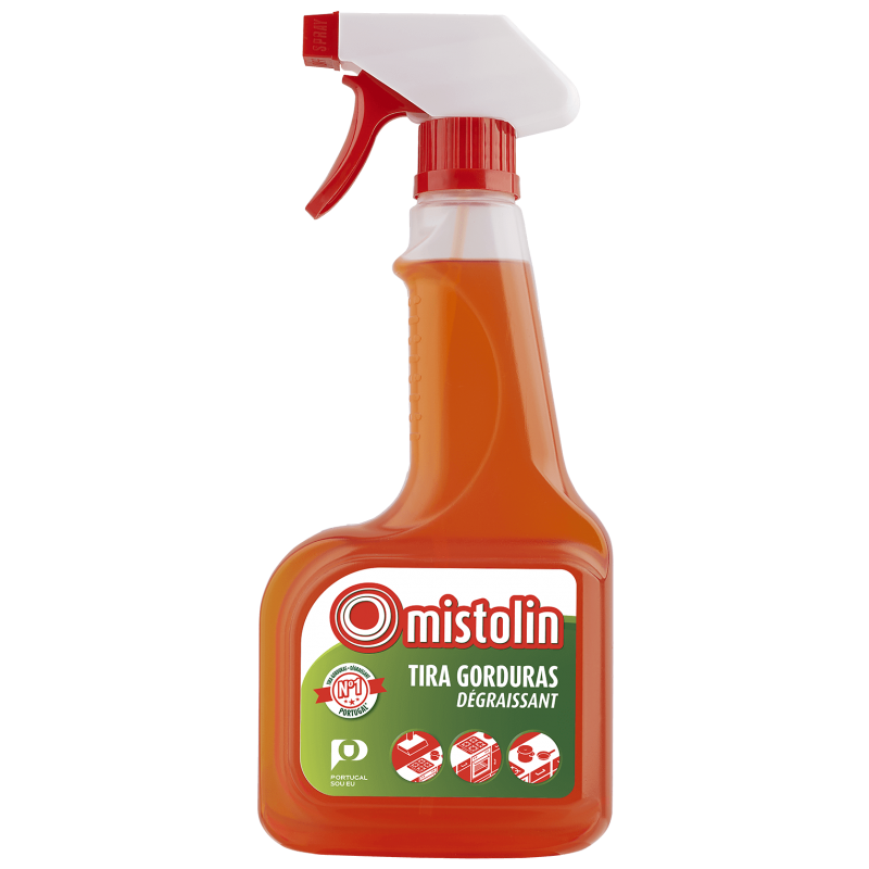 MISTOLIN TIRA GORDURAS ESPUMA ATIVA Mistolin Tira Gorduras ESPUMA ATIVA é implacável a eliminar eficazmente e sem esforço todo o tipo de gordura e sujidade difícil. A sua fórmula em espuma permite uma utilização mais segura, dado que não salpica, sendo ideal para utilizar em superfícies verticais.
