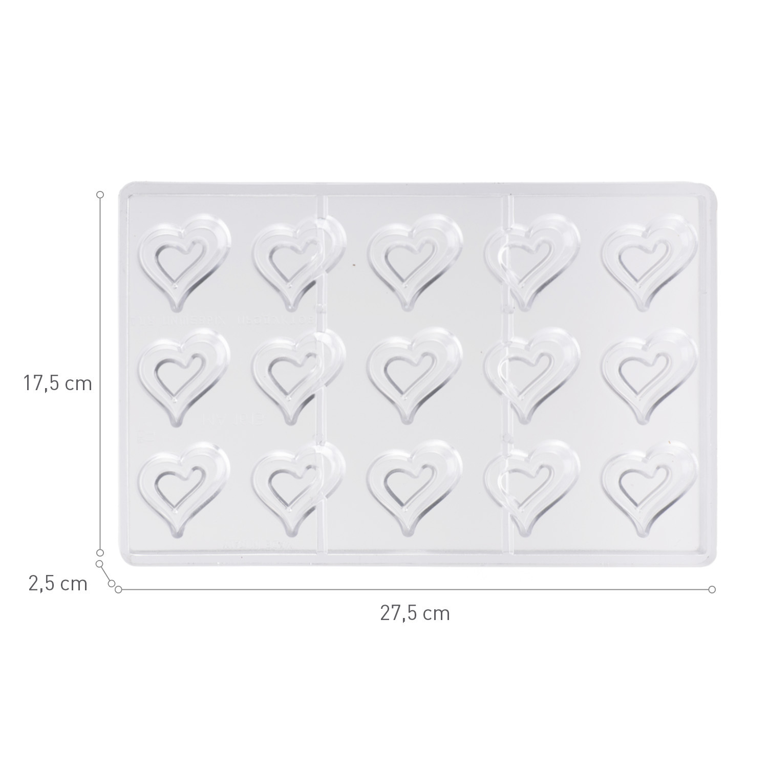 Molde de coração em policarbonato 40x42x15mm, 15 peças -