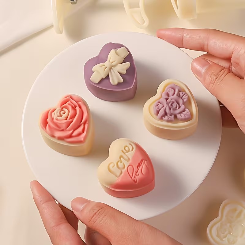 Conjunto Molde de Bolo de Lua em Forma de Coração com Carimbos