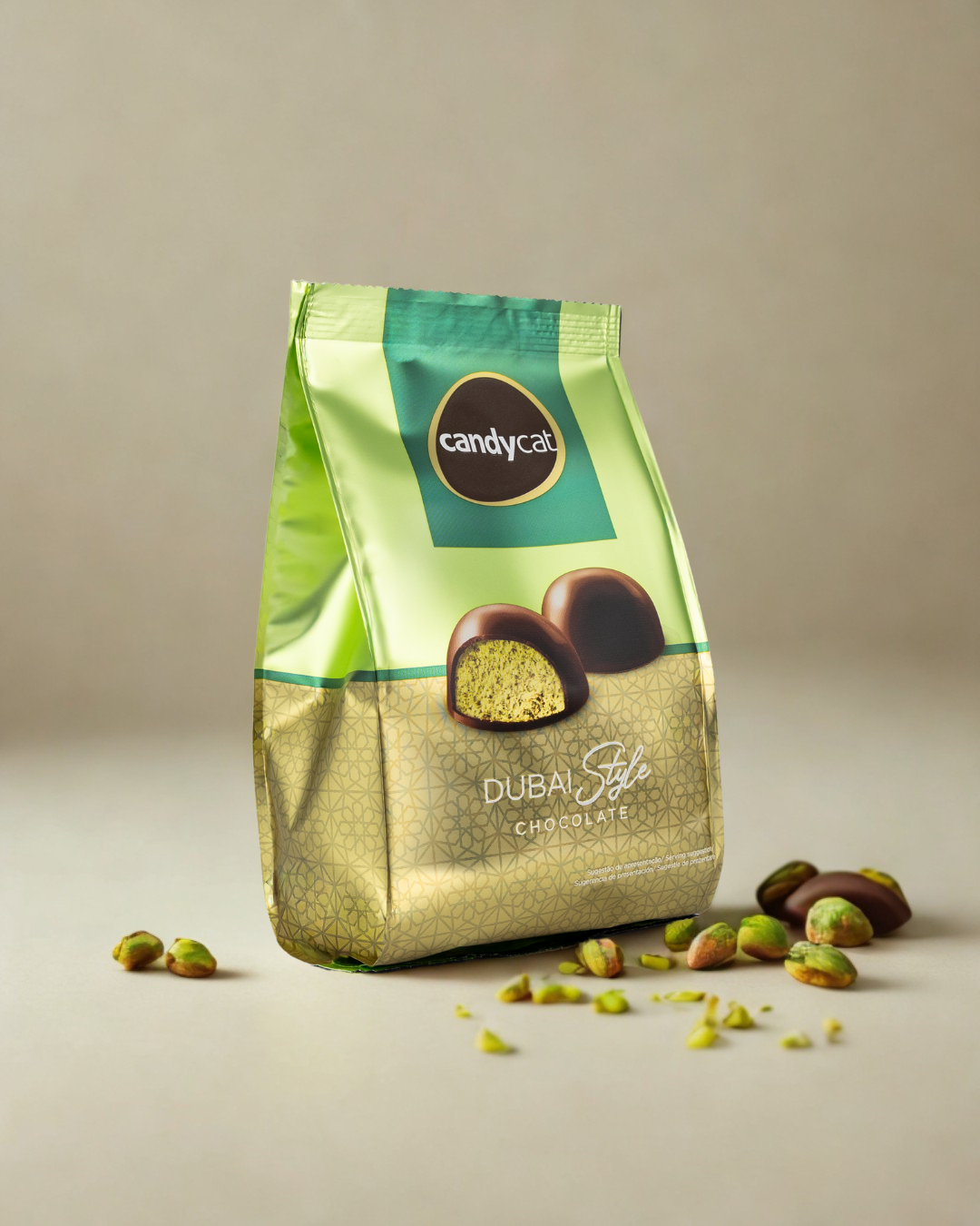 Sabor premium inspirado no estilo Dubai Textura suave e irresistível Embalagem de 150g — ideal para presentear ou saborear Perfeitos para qualquer ocasião Transforme momentos simples em experiências deliciosas com os bombons CANDYCAT Dubai Style.
