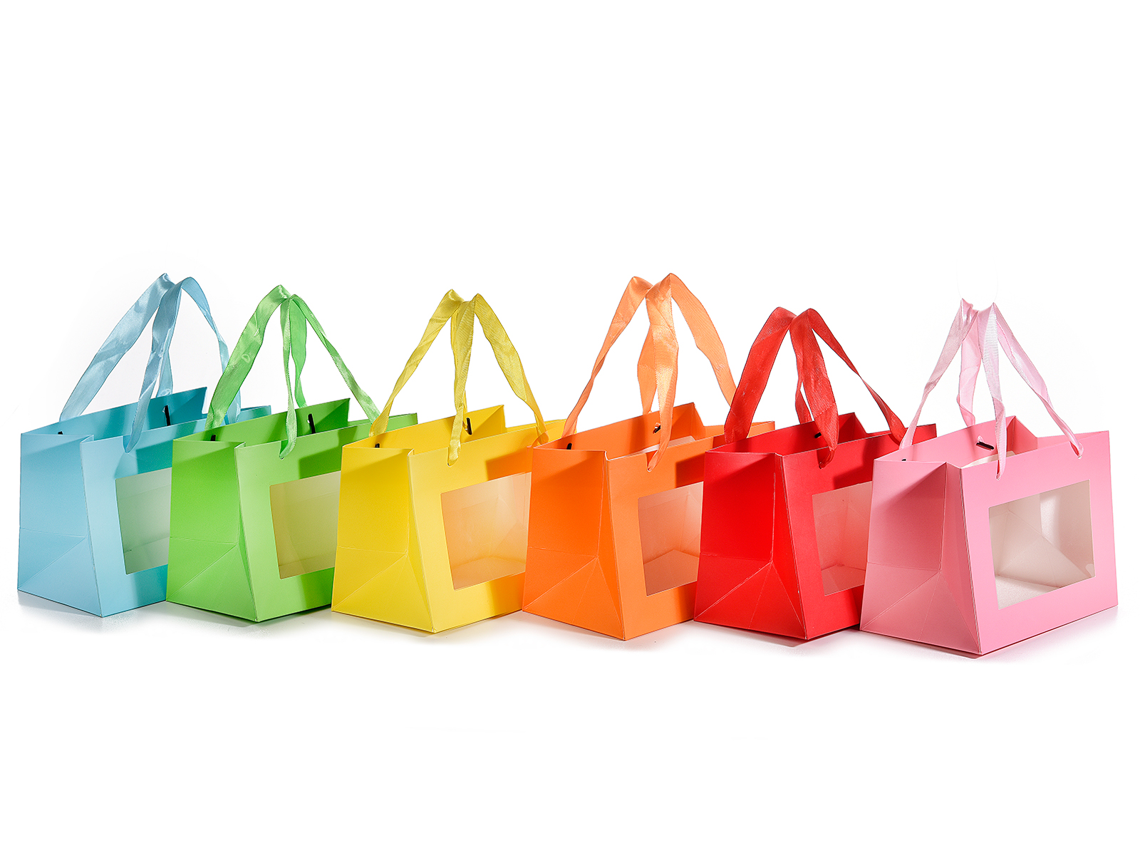 Saco de papel colorido com alças de tecido e janela ( 18x11x13,5cm) - und