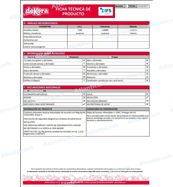 Coloração natural, E171 grátis, Sem adição de açúcar, Sem glúten.