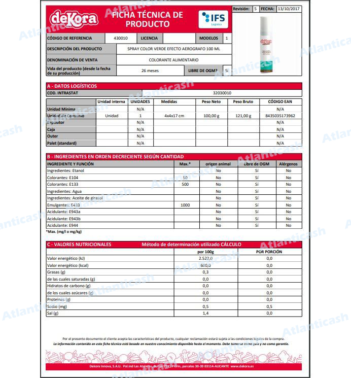Spray Alimentar Cor Verde Efeito Neutro 100ml