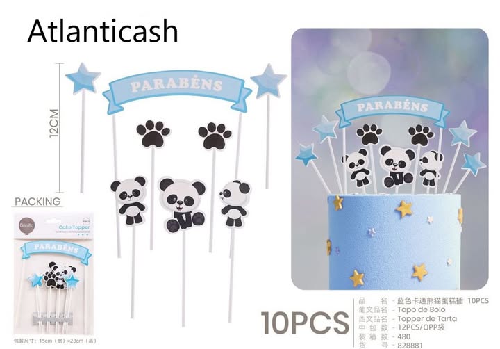 Topper de Bolo Panda Azul 10 Pçs. -